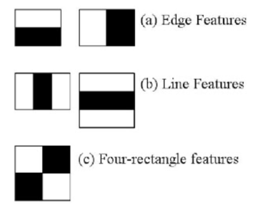 먼저 알아야 할 정보로 유사 하르 필터가 있다. 유사 하르 필터란 흑백 사각형이 서로 붙어 있는 형태로 구성된 필터다. 유사 하르 필터 형태에서 흰색 영역 픽셀 값은 모두 더하고, 검은색 영역 픽셀 값은 모두 빼서 하나의 특징 값을 얻을 수 있다. 사람의 정면 얼굴 형태가 전형적으로 밝은 영역(이마, 미간, 볼 등)과 어두운 영역(눈썹, 입술 등)이 정해져 있기 때문에 유사 하르 필터로 구한 특징 값은 얼굴을 판별하는 용도로 사용할 수 있게 되는 것이다.