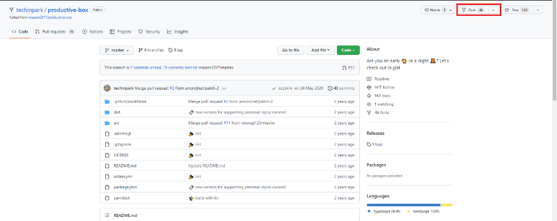 위 링크로 들어가 레파지토리를 포크하자.