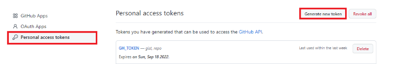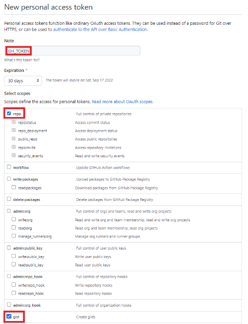 이름은 GH_TOKEN으로 생성하고, repo와 gist을 선택하고 생성해주도록 하자.