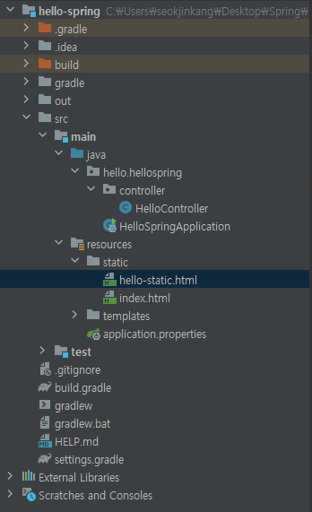 src/main/java/resources/static 폴더 아래 "hello-static.html"이라는 이름을 가진 파일을 하나 만들어주자.