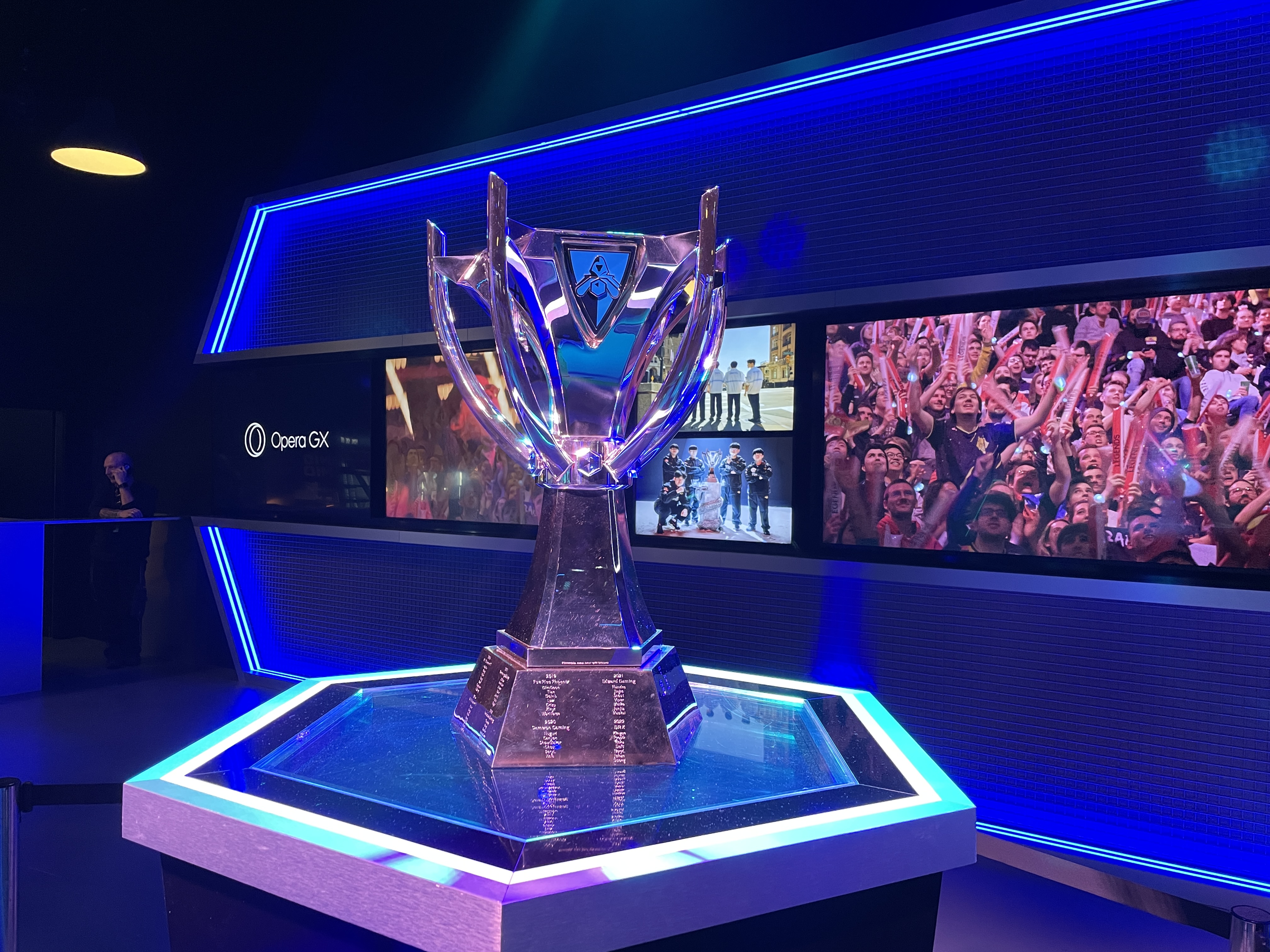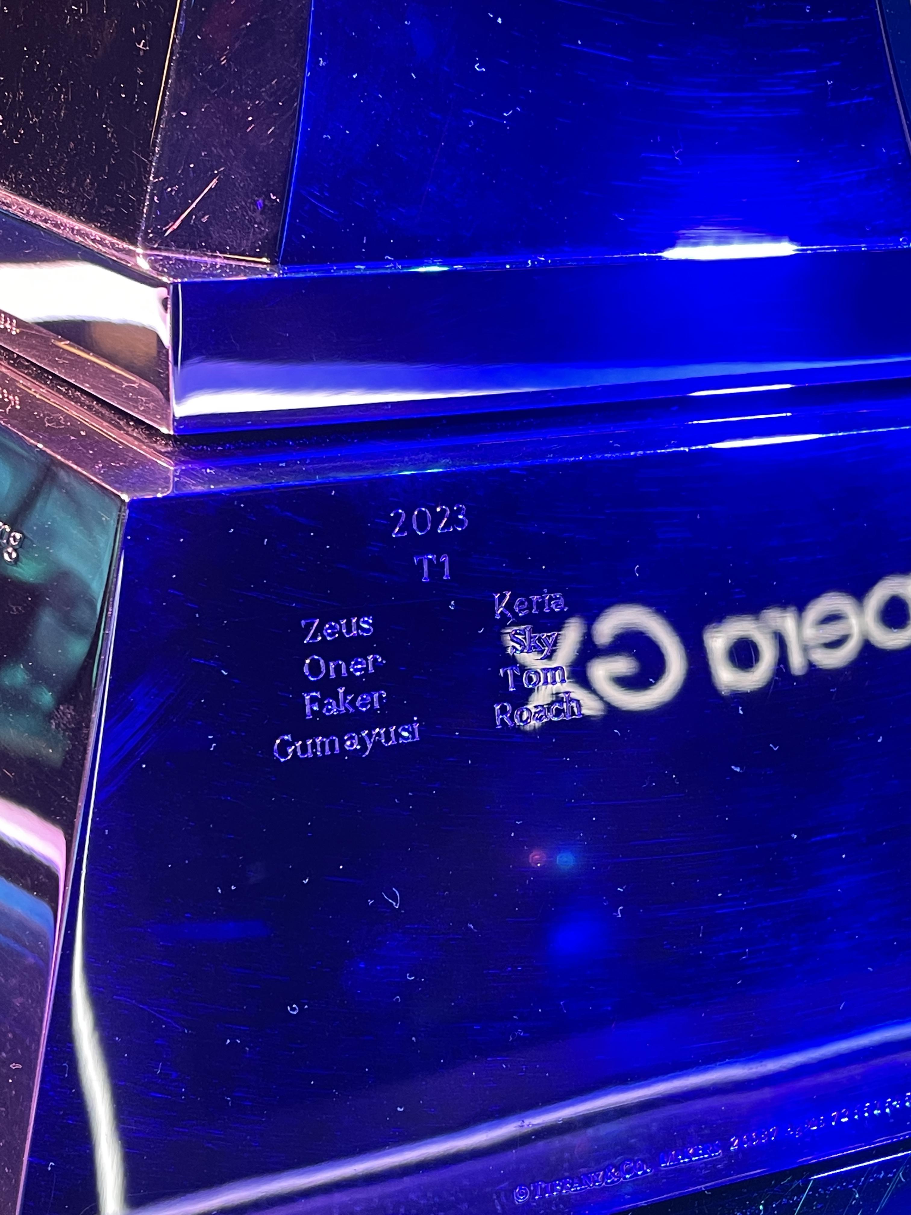 들어가자마자 보이는 월즈 트로피. 트로피 아래를 보면 뭔가 적혀있는게 보이는데, 역대 월즈 우승자들을 적어뒀더라.