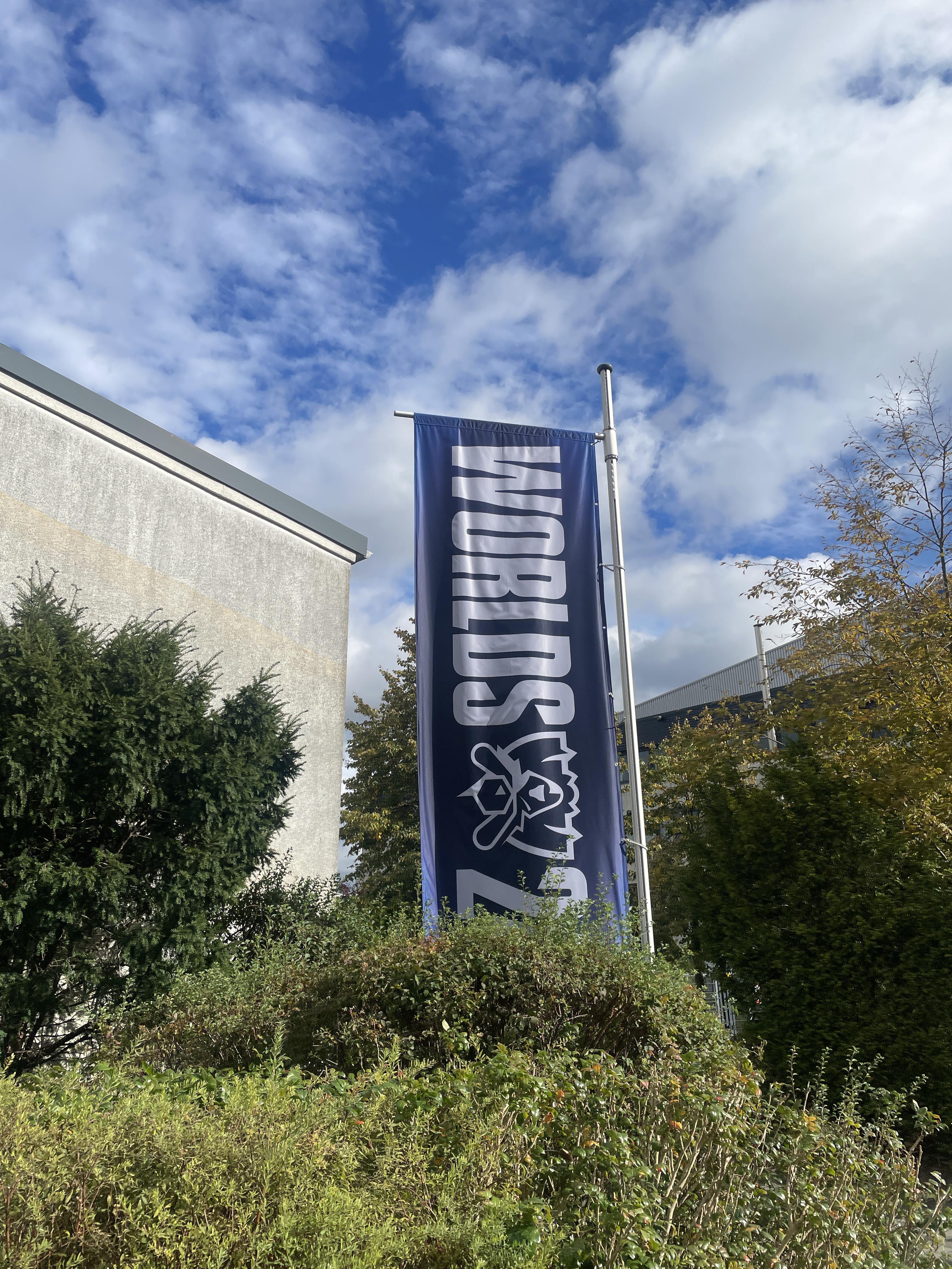 수풀 너머로 보이는 Worlds 2024 깃발. 저 깃발이 없었으면 경기장인줄도 모르고 지나쳤을 정도로 규모가 작았다.